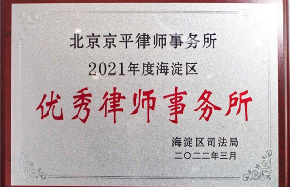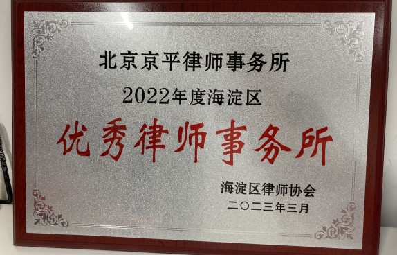 • 北京京平律師事務(wù)所榮獲2022年度海淀區(qū)“優(yōu)秀律師事務(wù)所”稱號